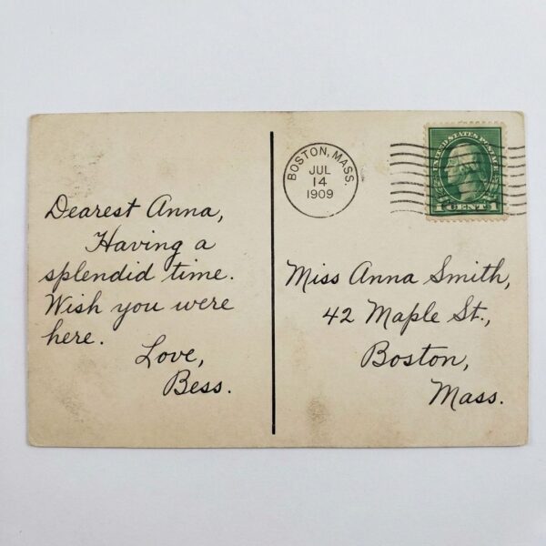 Before 1907, US postal regulations prohibited writing messages on the address side of a postcard. We always tell new collectors that finding a “divided back”—where one half is for the address and the other for a message—is the easiest way to date a card to post-1907. This regulatory shift ignited the “Golden Age” of postcards, leading to many of the stunning vintage postcards we offer today.