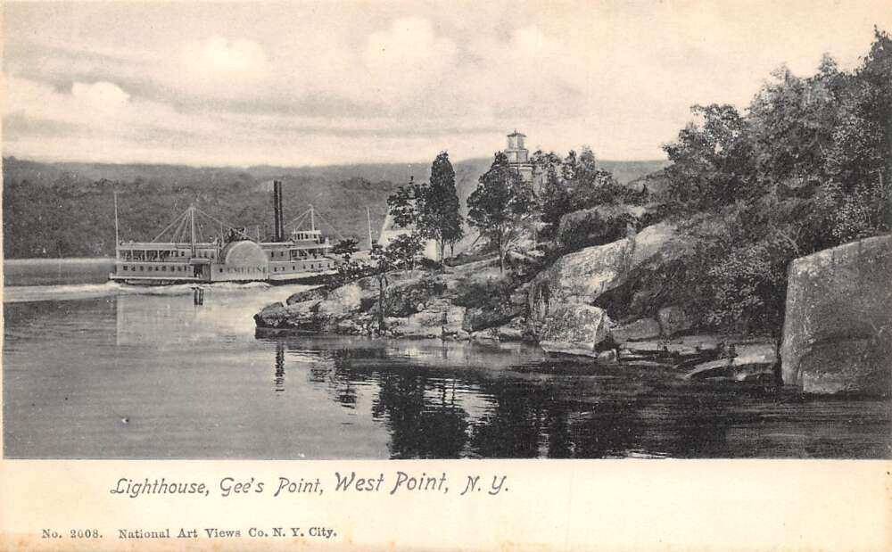 West Point New York Gees Point Lighthouse Steamer Vintage Postcard AA110646