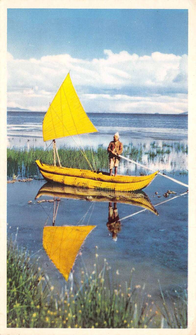Lake Titicaca Bolivia Balsa Boat Panam Panagra Vintage Postcard AA112486