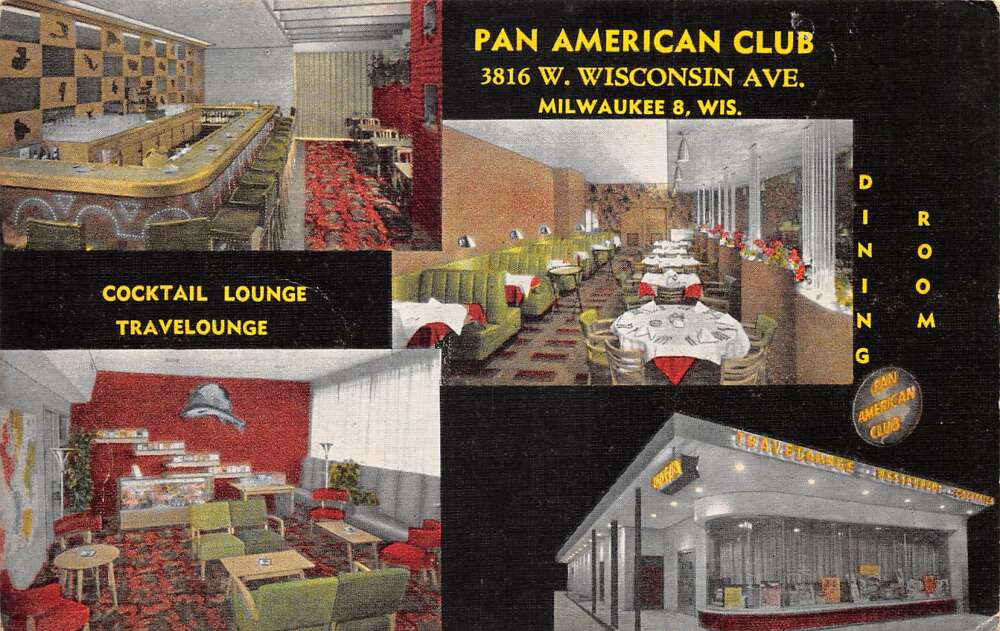 Milwaukee Wisconsin Pan American Club Cocktail Lounge Vintage Postcard AA112487