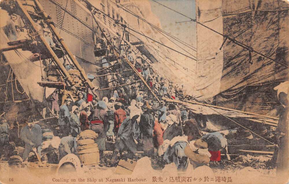 Nagasaki Japan Coaling on the Ship at Harbor Vintage Postcard AA112491