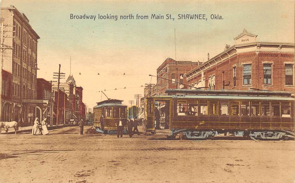 Shawnee Oklahoma Broadway North from Main Trolley Postcard AA112473
