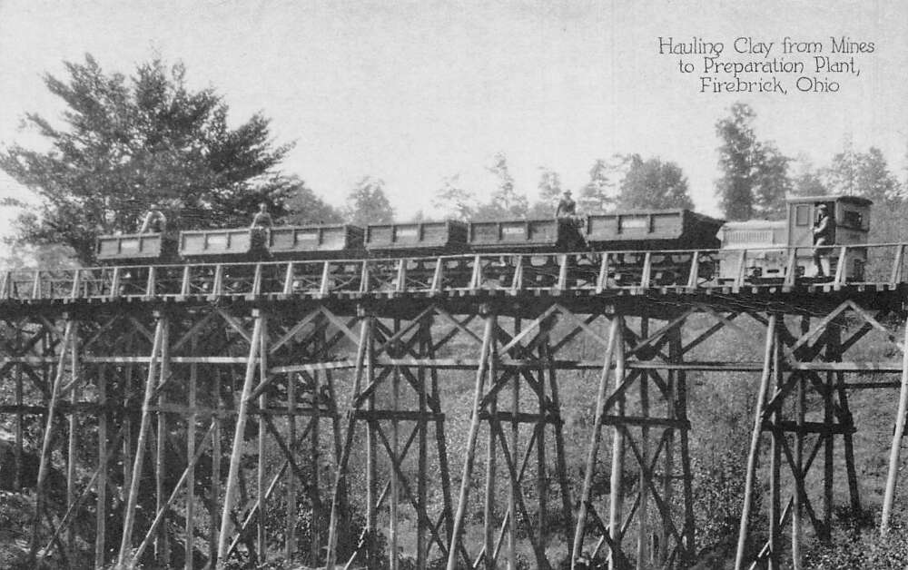 Firebrick Ohio Train hauling Clay from Mines Vintage Postcard AA112474