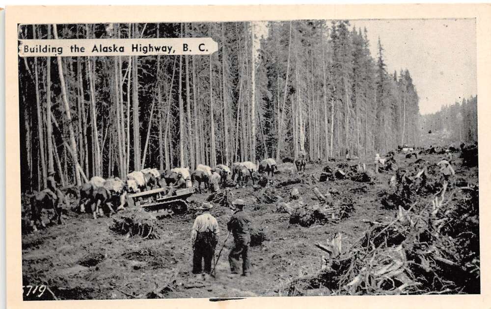 British Columbia Canada Building Alaska Highway Construction Postcard AA112478