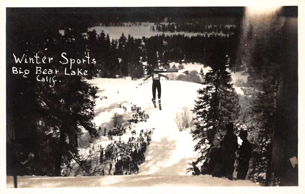 Big Bear Lake California Winter Sports Skiiing Real Photo Postcard AA111763