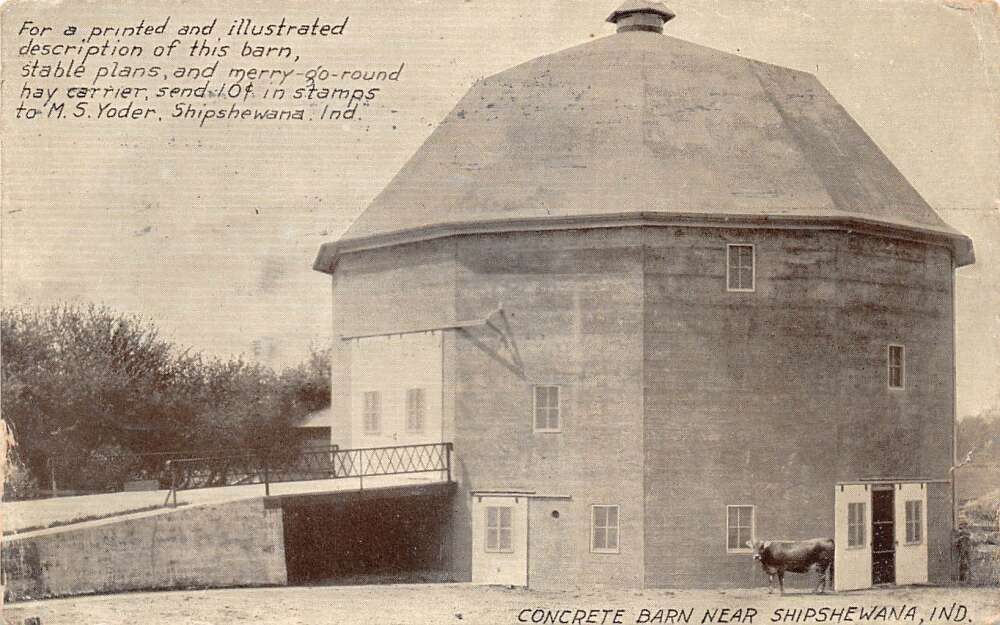 Shipshewana Indiana Menno Yoder Concrete Barn Farming Scene Postcard AA111767
