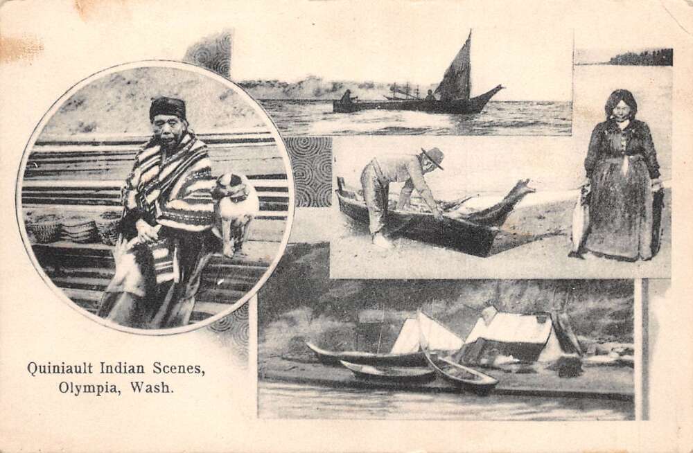 Olympia Washington Quiniault Indian Scenes Native American Postcard AA85947