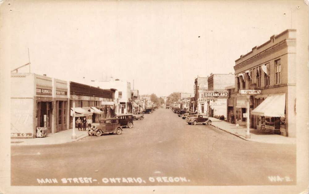 Ontario Oregon Main Street Business District Real Photo Postcard AA106596