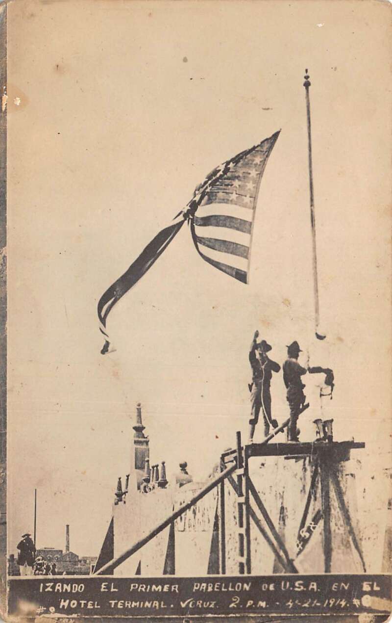 Veracruz Mexico Raising American Flag Mexican Revolution Real Photo PC AA80804