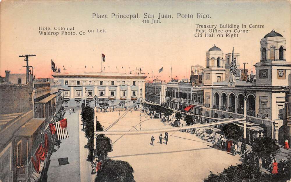 San Juan Puerto Rico Plaza Princepal Treasury Hotel Colonial Postcard AA80808