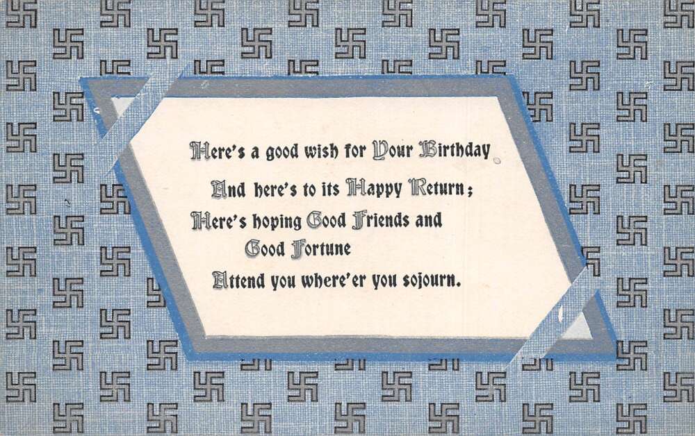 Birthday Greetings Good Wishes Swastika Vintage Postcard AA80809