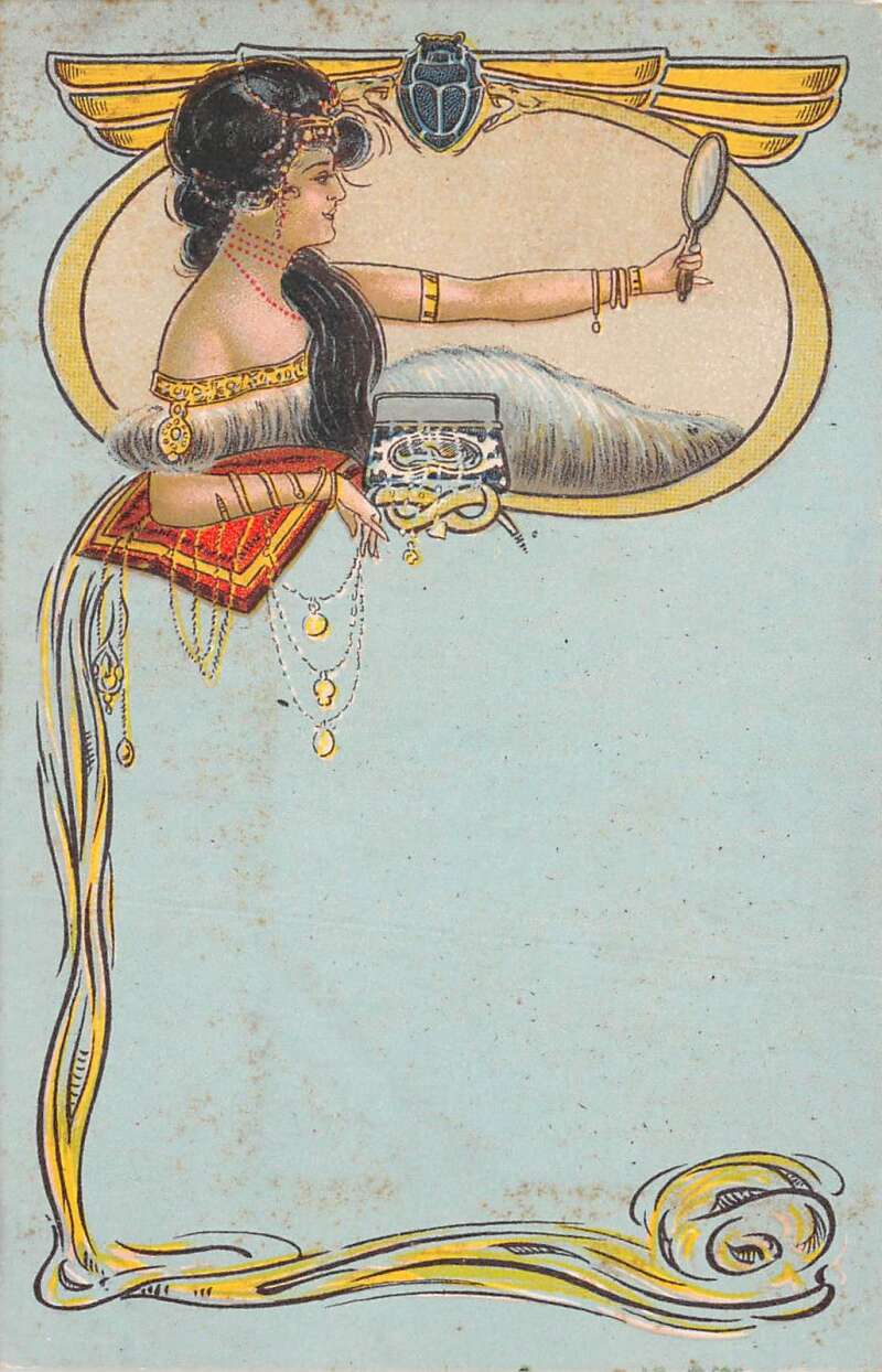 Art Nouveau Egypt Scarab Beetle Lady with Jewels and Mirror Postcard AA106257