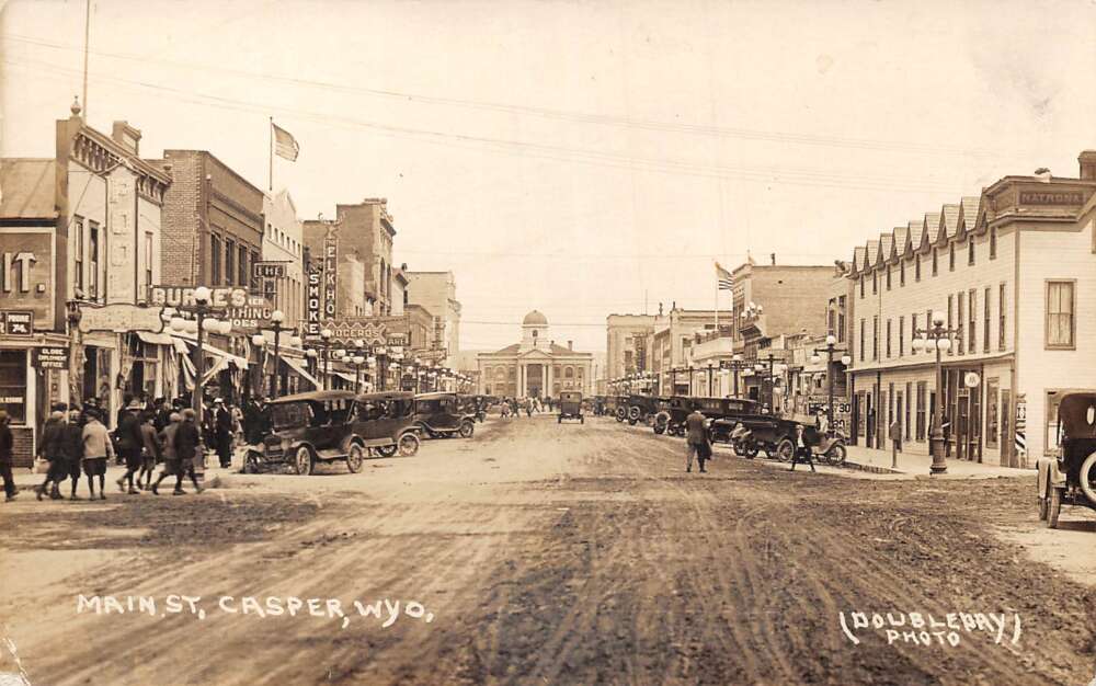 Casper Wyoming Main Street Doubleday Real Photo Vintage Postcard AA107906