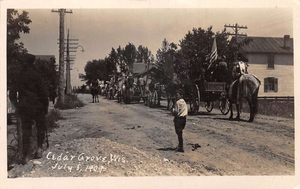 Cedar Grove Wisconsin July 4th Patriotic Parade Real Photo Postcard AA107908