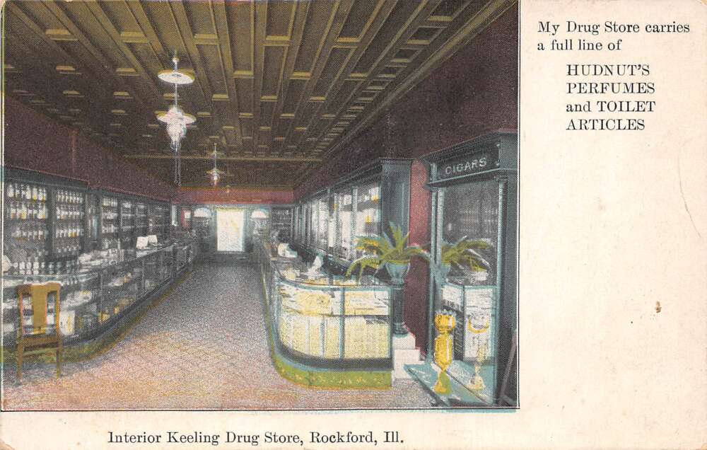 Rockford Illinois Keeling Drug Store Interior Vintage Postcard AA73738