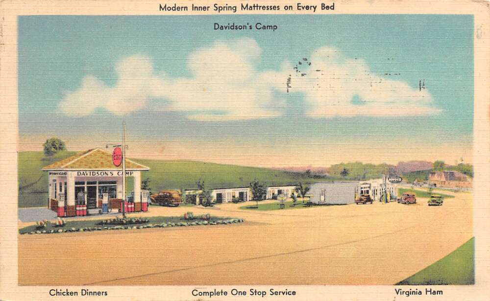 Roanoke Virginia Davidson’s Camp Tourist Center, Color Linen, Vintage PC U26753