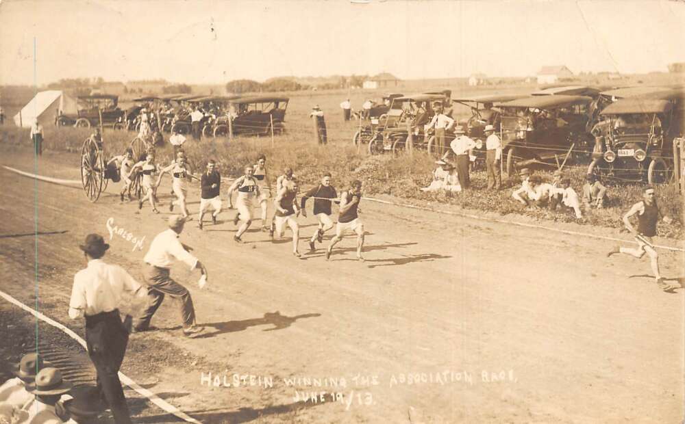Holstein Iowa Foot Race Pulling Chariot Real Photo Postcard AA78201