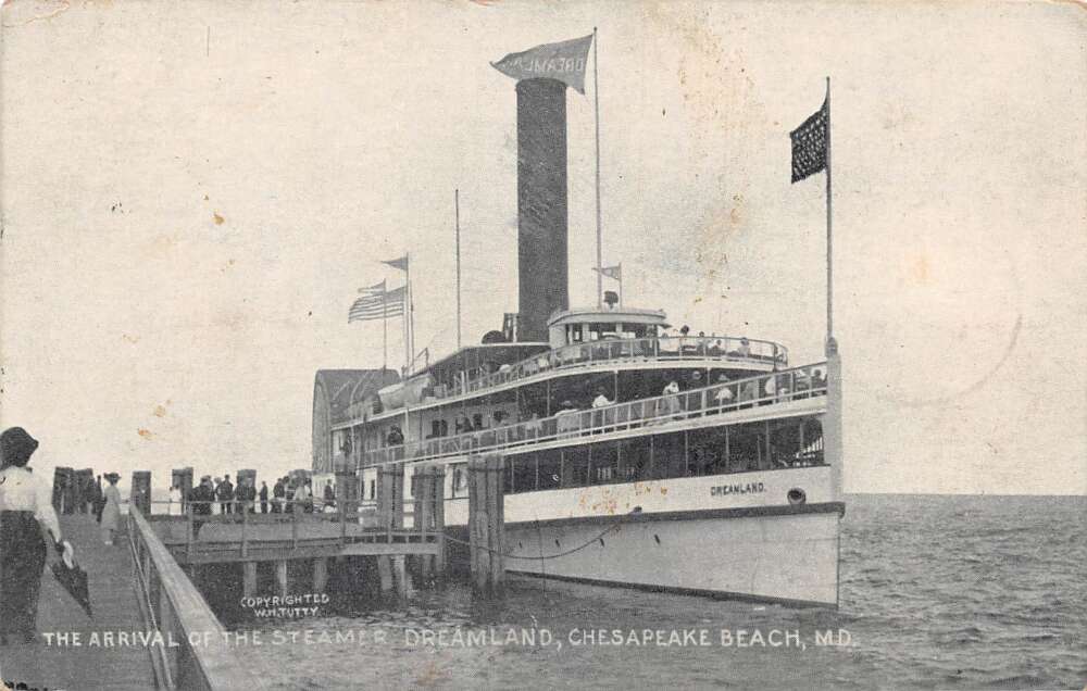 Chesapeake Beach Maryland Steamer Dreamland at Dock Vintage Postcard AA107474