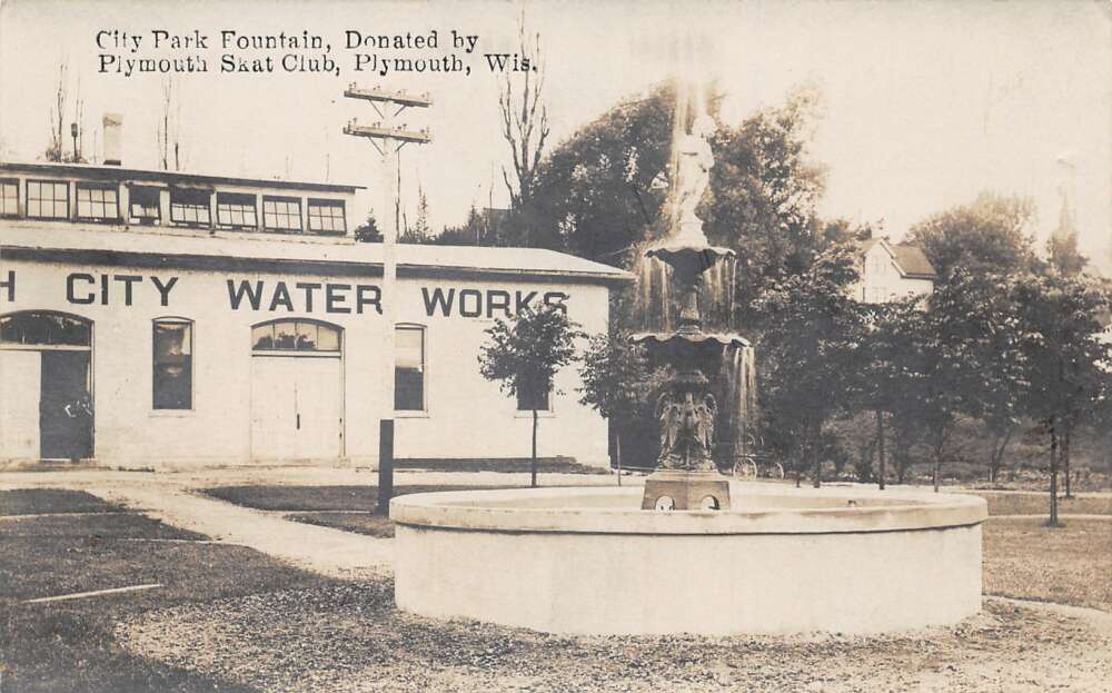 Plymouth Wisconsin Skat Club City Park Fountain Real Photo Postcard AA107475