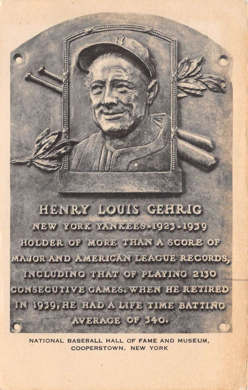 Baseball Hall of Fame Lou Gehrig Plaque Sports Yankees Postcard AA1100883