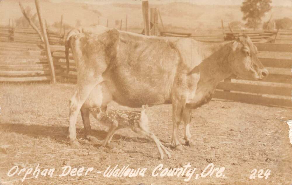Wallowa County Oregon Orphan Deer and Cow Real Photo Vintage Postcard AA106647