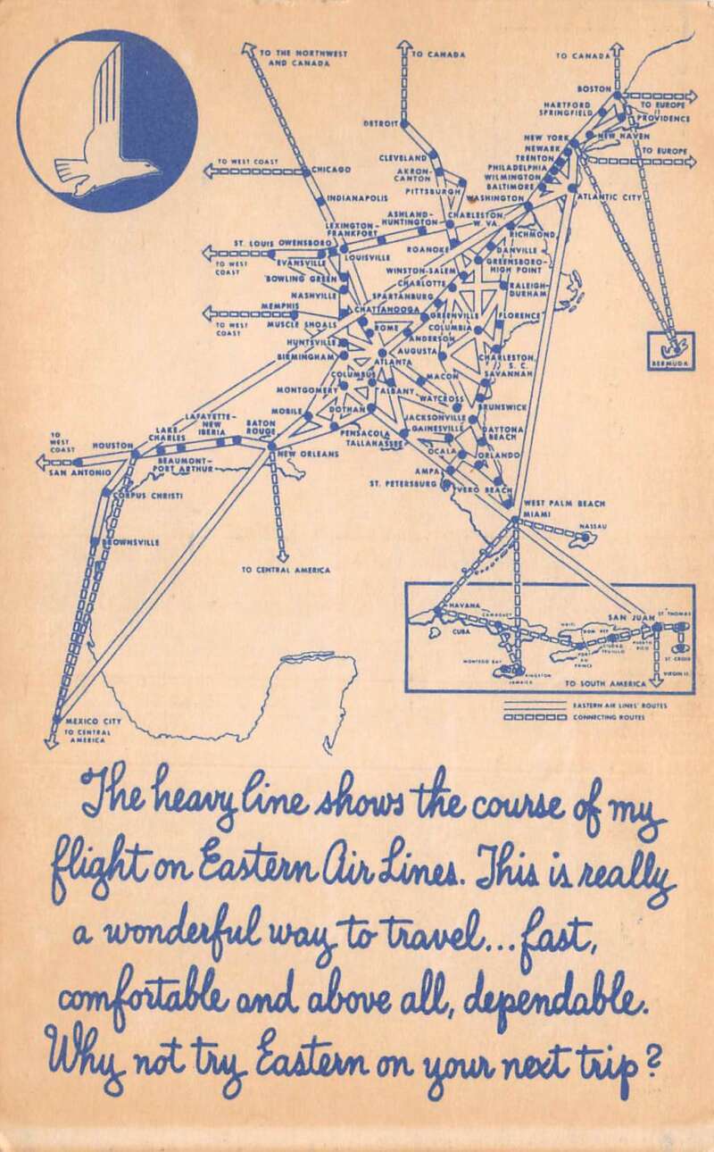 Eastern Airlines Flight Map Travel Ad Vintage Postcard AA106652
