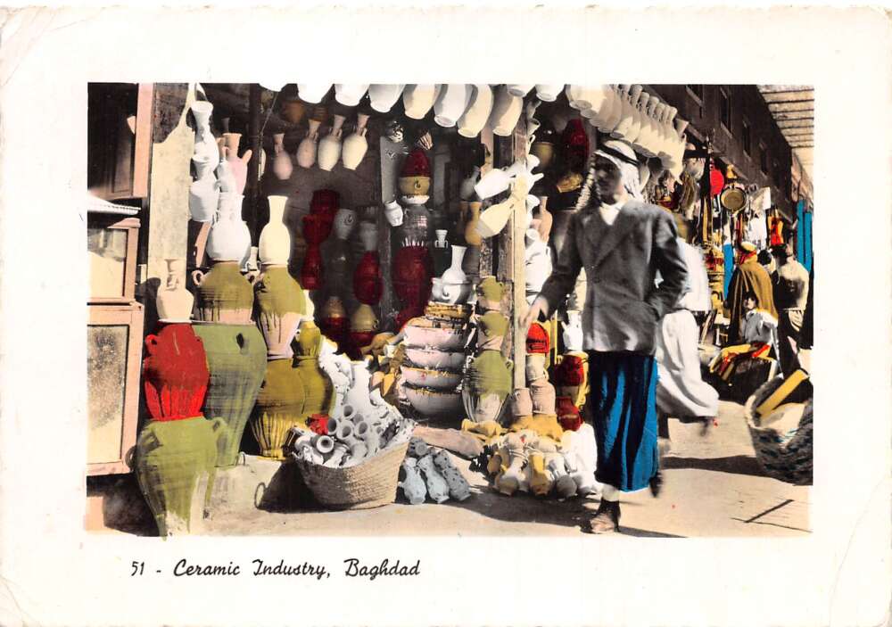 Baghdad Iraq Ceramic Pottery Street Vendor Tinted Real Photo Postcard AA106655