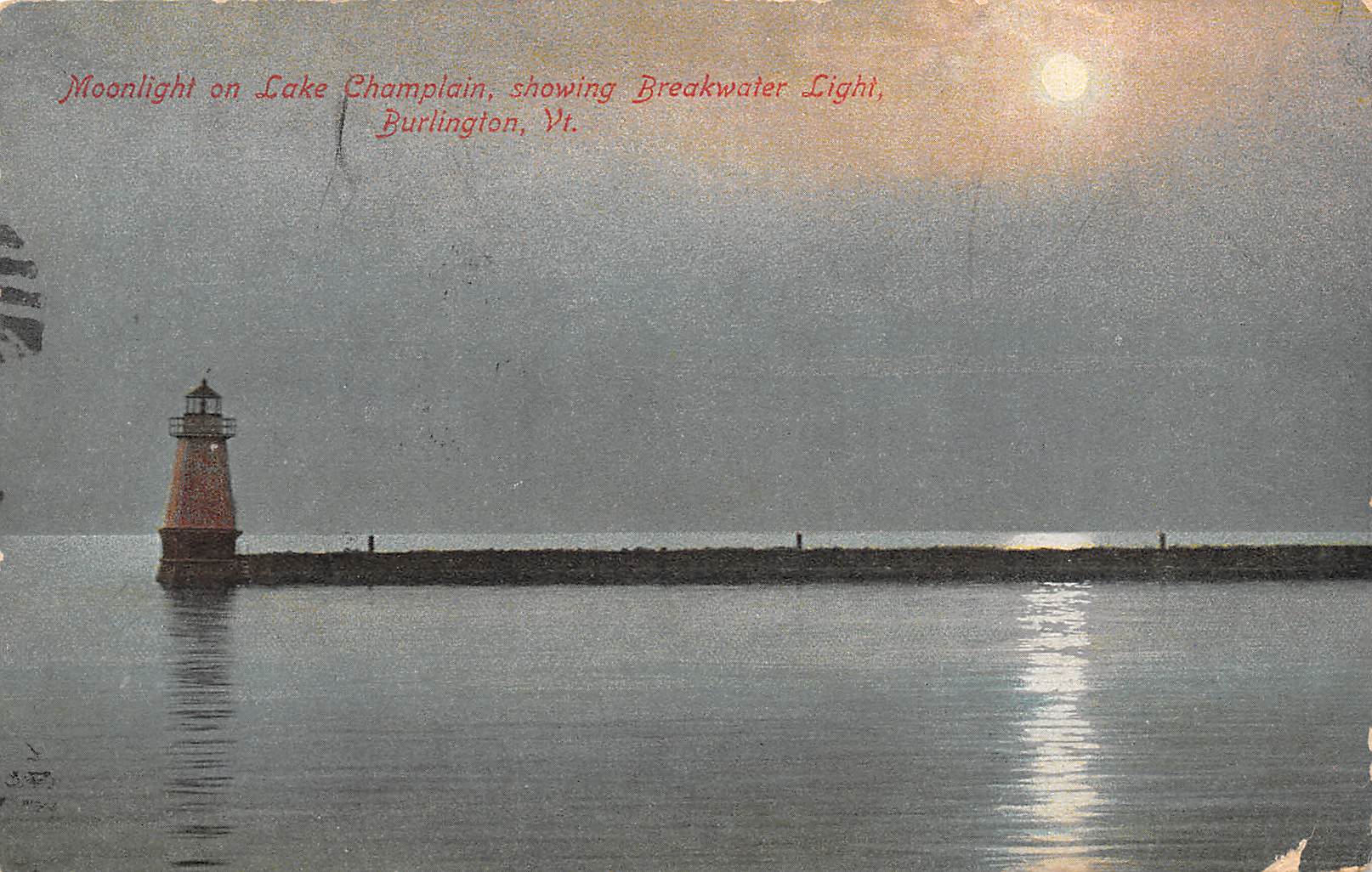 Burlington Vermont Moonlight, Lake Champlain, Breakwater Light House, PC U19829