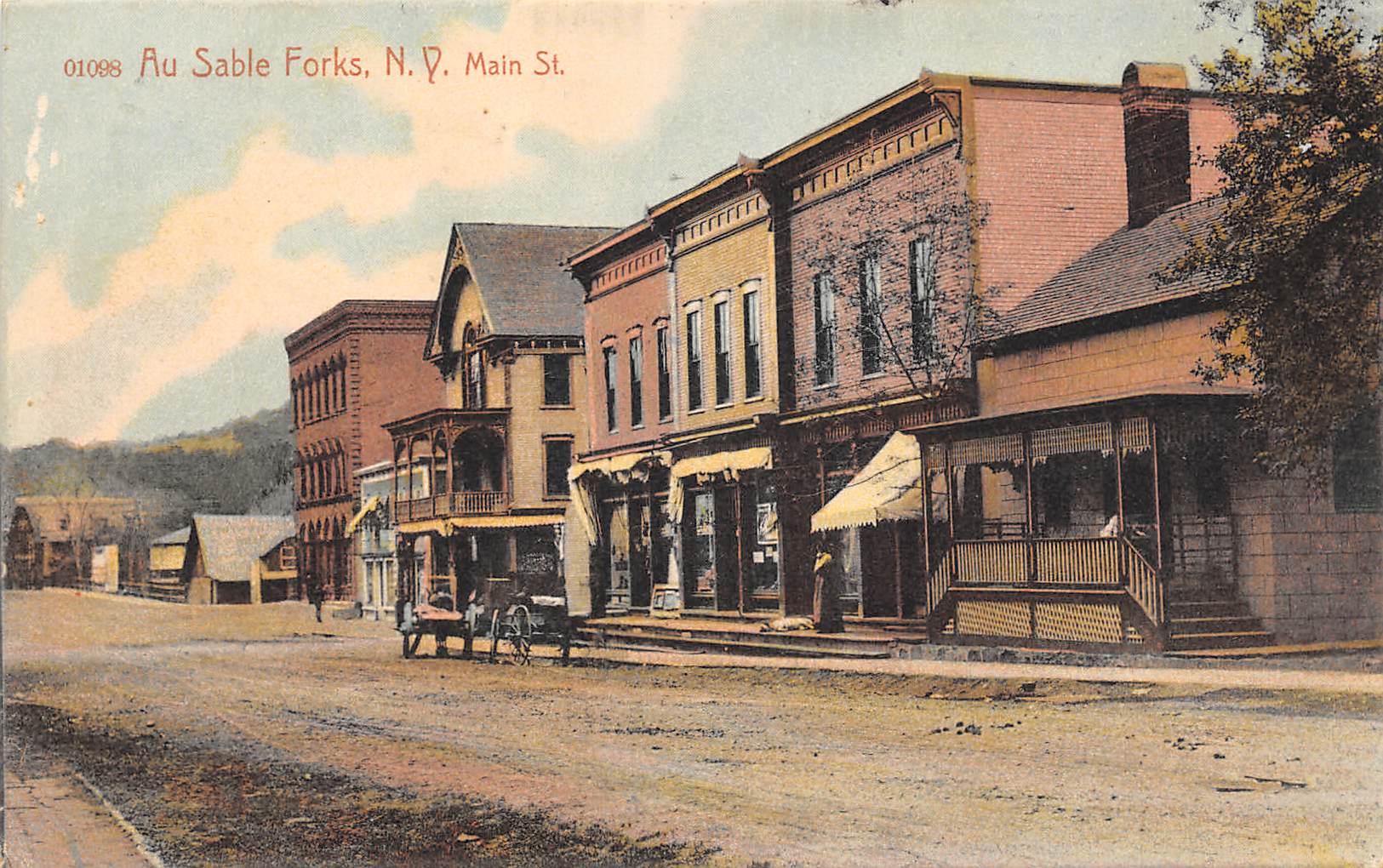 Au Sable Forks New York Main Street, Color Lithograph, Vintage Postcard U19832