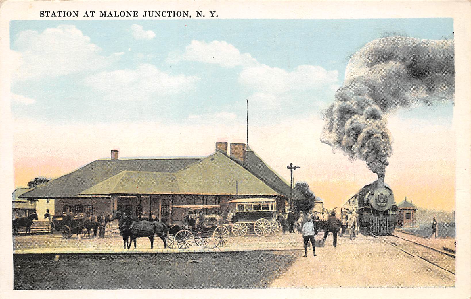 Malone Junction New York Railroad Station, White Border, Vintage Postcard U19834