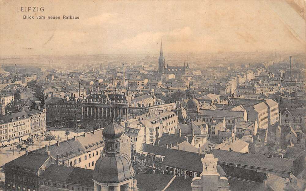 Zeipzig Germany Birds Eye View from Rathaus Vintage Postcard AA106736