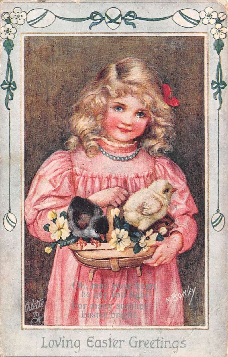 Easter Greetings Girl with Basket of Flowers and Chicks Bowley Tuck PC AA106739
