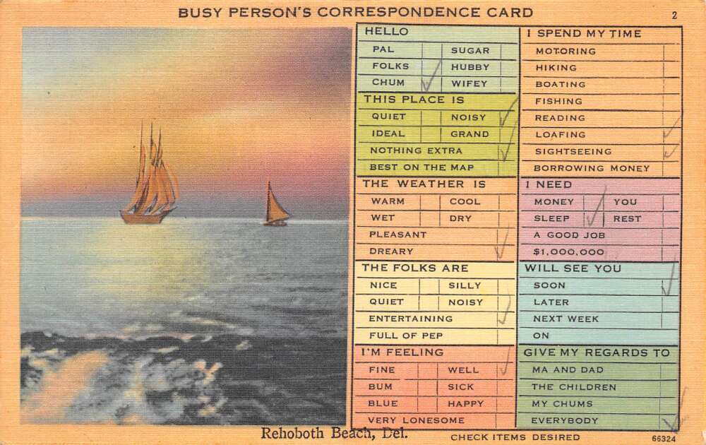 Rehoboth Beach Delaware Busy Persons Correspondence Card Postcard AA106740