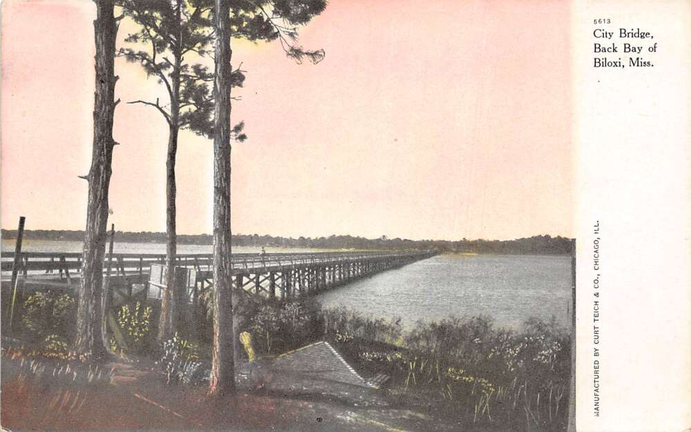 Biloxi Mississippi City Bridge Back Bay Scenic View Vintage Postcard AA85305