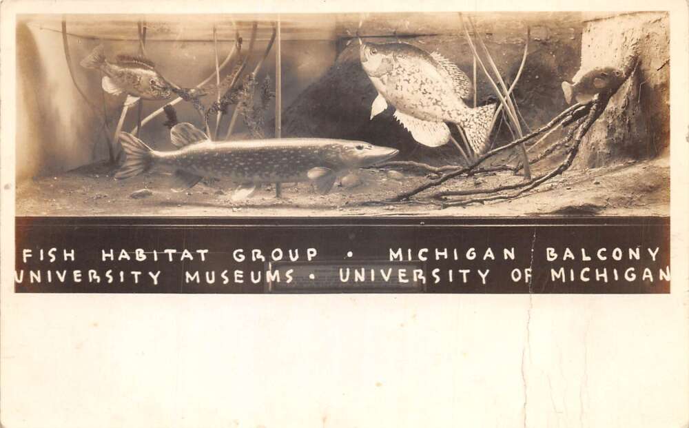 Ann Arbor Michigan University Museum Fish Habitat Real Photo Postcard AA106472