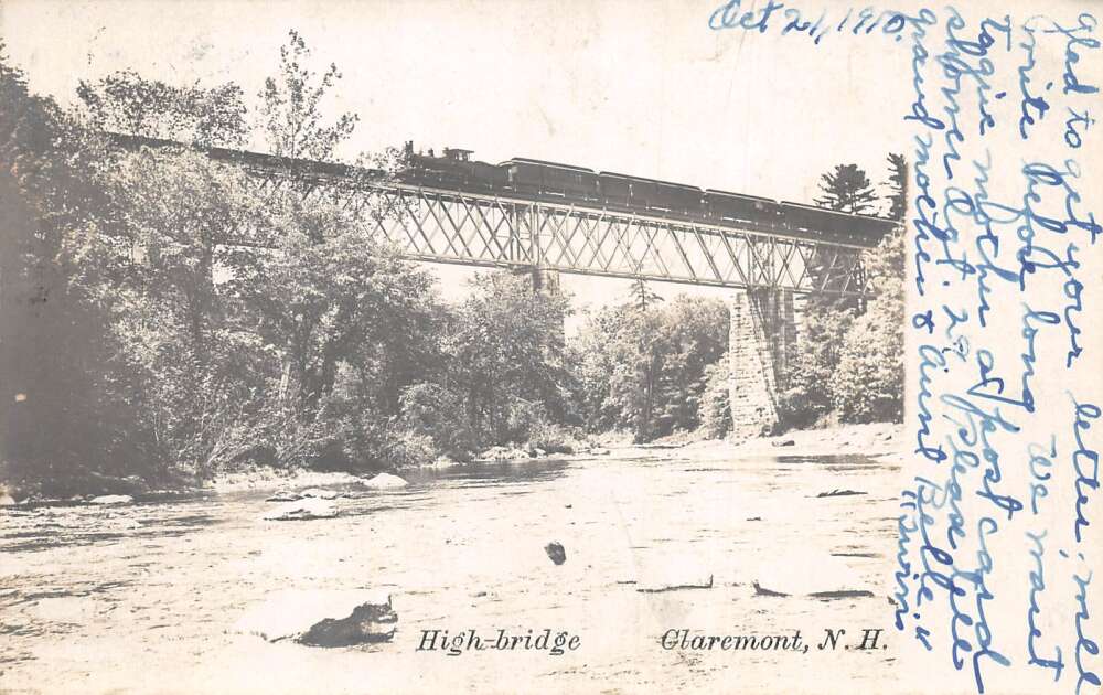 Claremont New Hampshire High Bridge Railroad Scene Real Photo Postcard AA85847