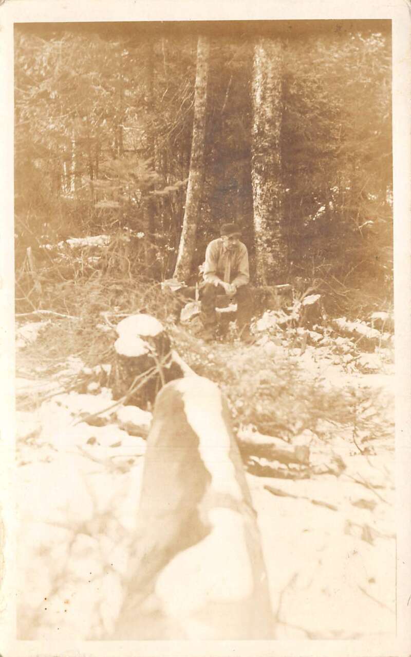 Carleton Michigan Man Sitting in Woods Winter Scenic View Real Photo PC AA85850
