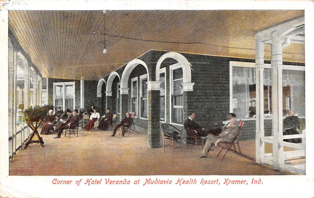 Kramer Indiana Mudlavia Health Resort Hotel Veranda Vintage Postcard AA85857