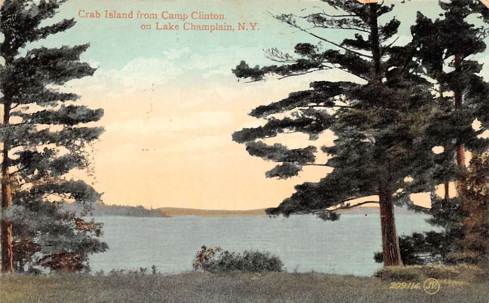Lake Champlain New York Crab Island from Camp Clinton Vintage Postcard AA85859