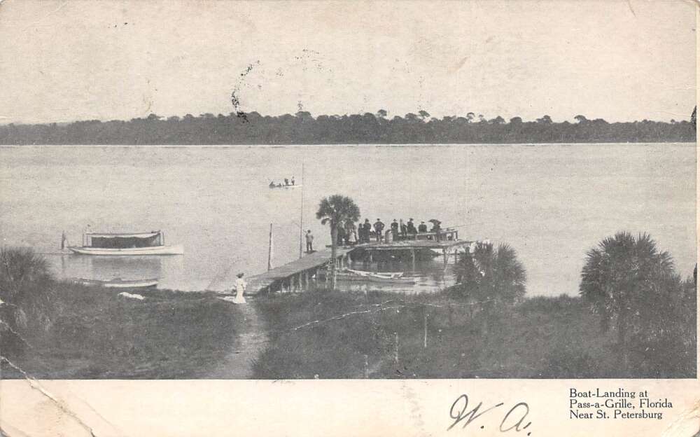 Pass-a-Grille Florida Boat Landing Scenic View Vintage Postcard AA105833