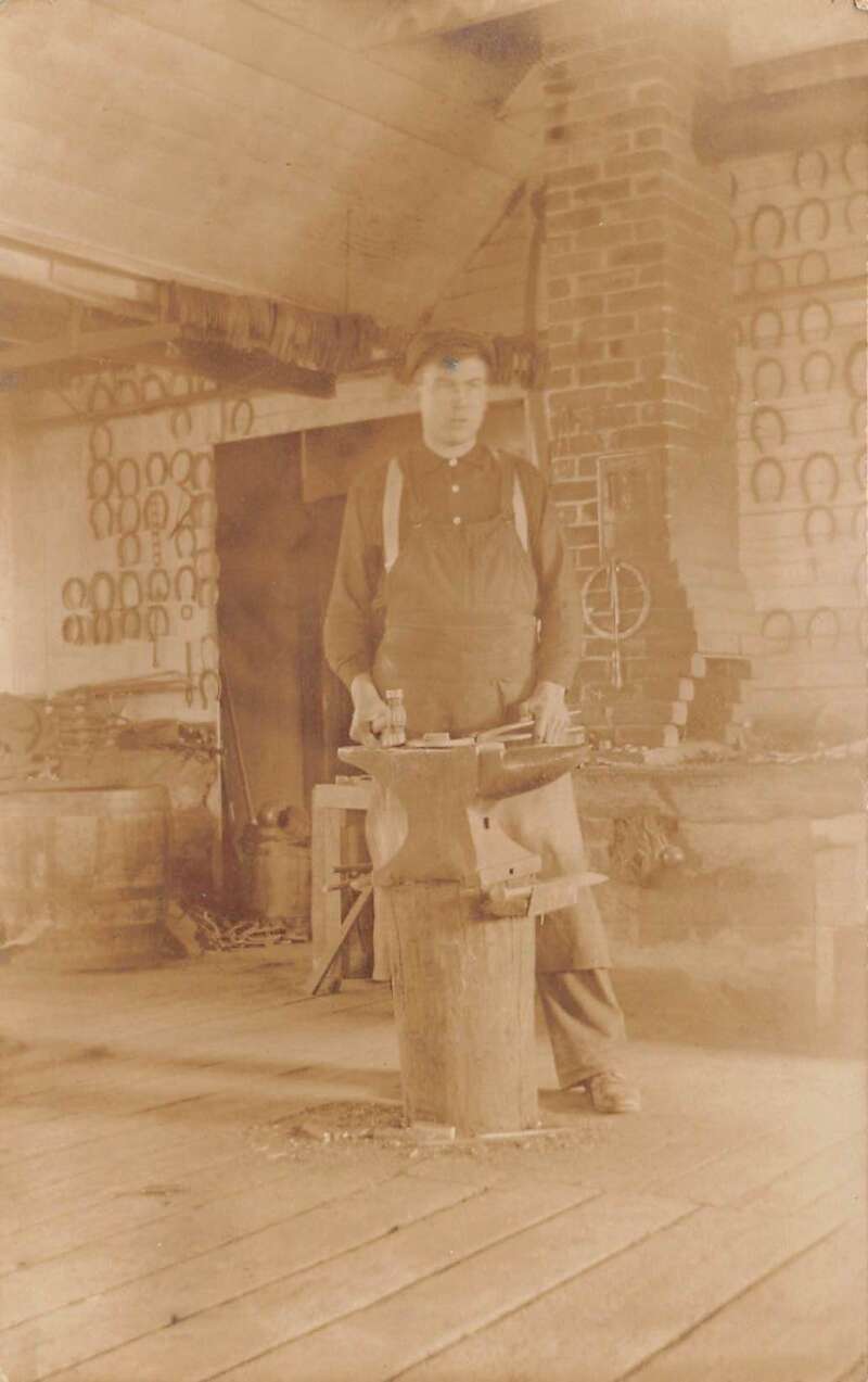 Blacksmith in Workshop Making Tool Real Photo Vintage Postcard AA85802