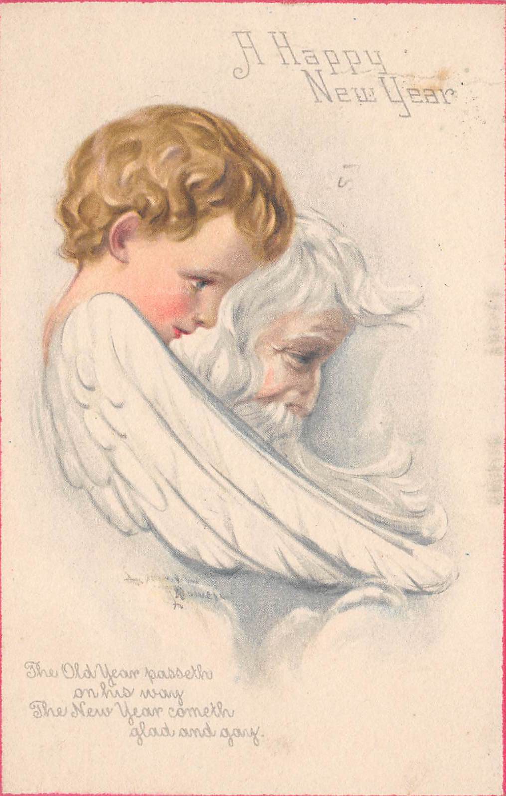 A Happy New Year, Old Man Old Year, New Year Angel, Vintage Postcard U19862