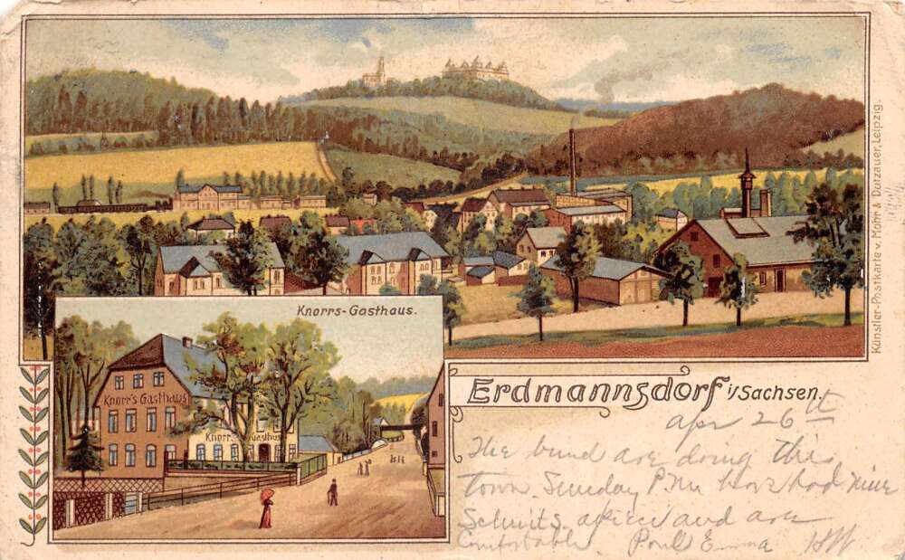 Erdmannsdorf Sachsen Germany Birds Eye View Vintage Postcard AA106706