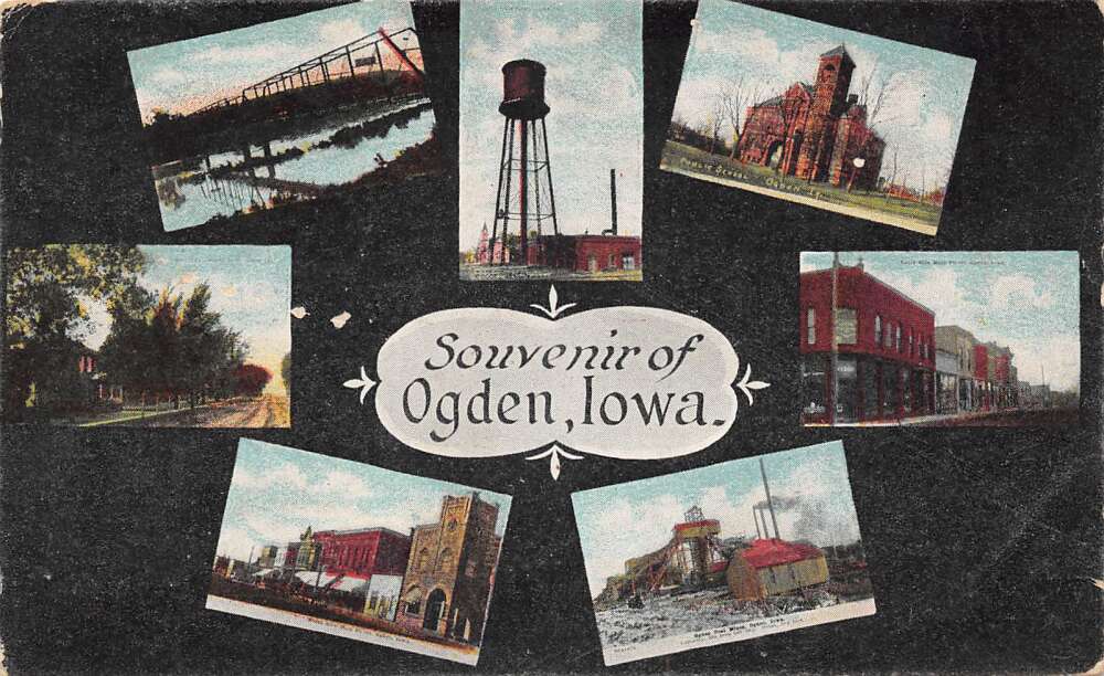 Ogden Iowa Souvenir Views Of Ogden, Color Lithograph, Vintage Postcard U26401