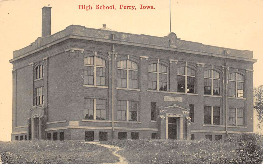 Perry Iowa High School, B/W Lithograph, Vintage Postcard U26402