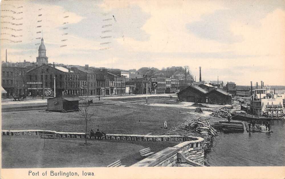 Burlington Iowa Port Of Burlington, Rotograph Co., Vintage Postcard U26405