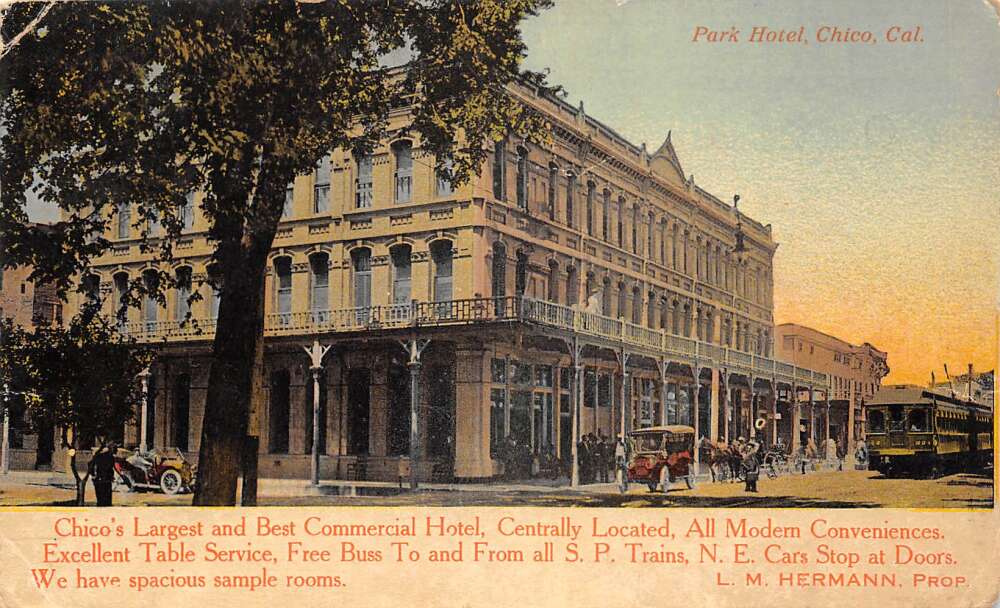 Chico California Park Hotel, Color Lithograph, Vintage Postcard U26409