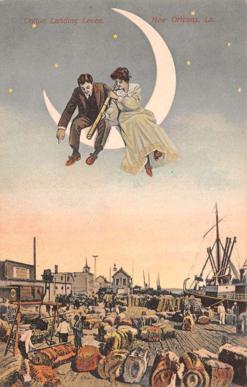 New Orleans Louisiana Cotton Landing Levee People on Moon Postcard AA106783