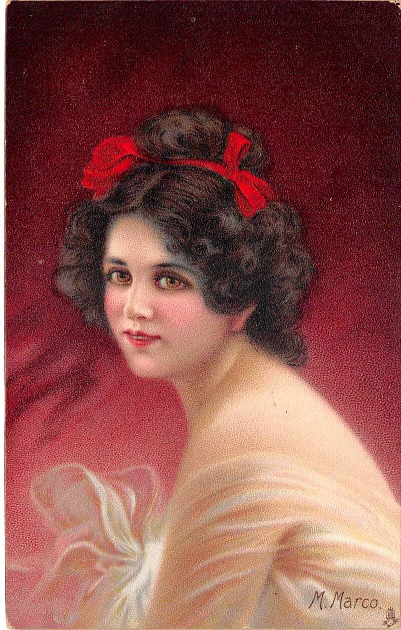 Pretty Lady Red Ribbon in Hair Blanche M Marco Tuck Vintage Postcard AA106784
