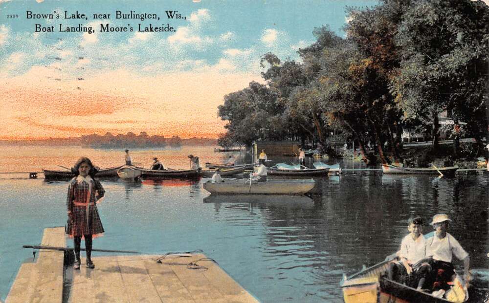 Burlington Wisconsin Brown’s Lake Moore’s Lakeside Boat Landing PC AA106788
